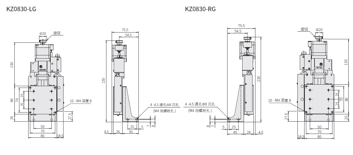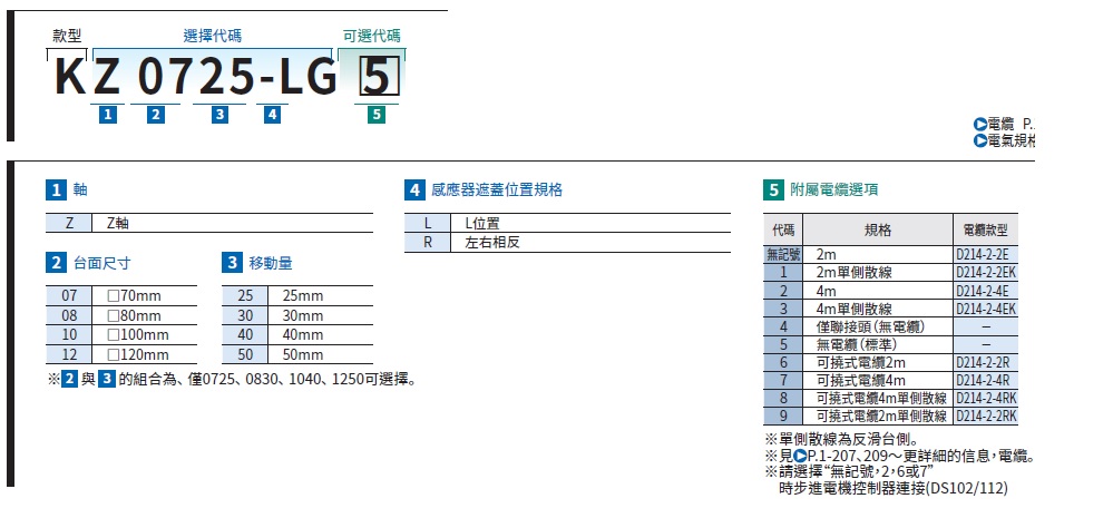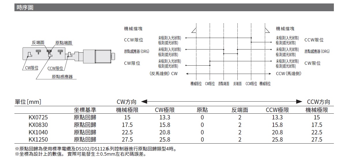 滑台台面尺寸:80×80mm規格時型號為「KZ0830C~」。