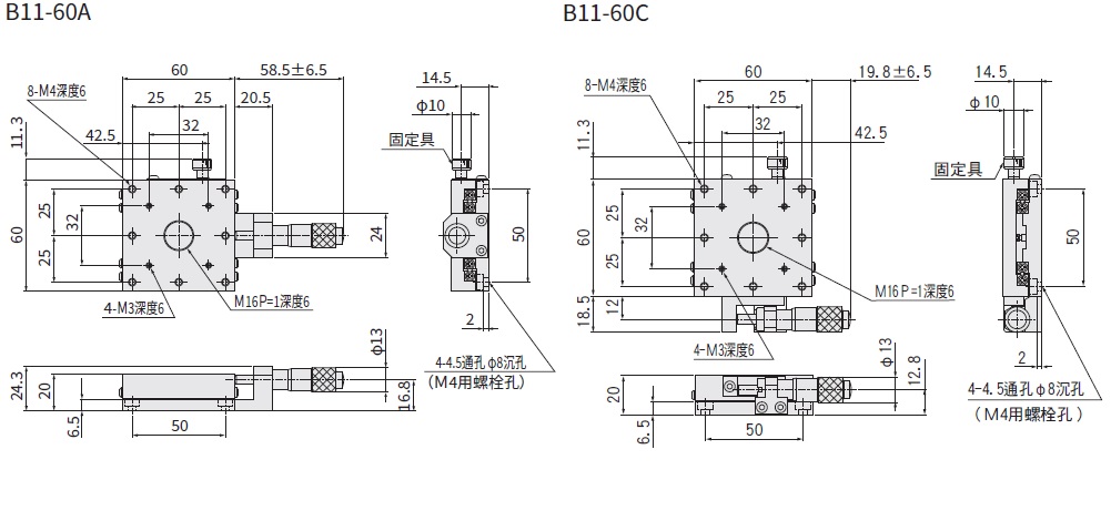 X軸 交叉滾珠導軌型□60mm:B11-60