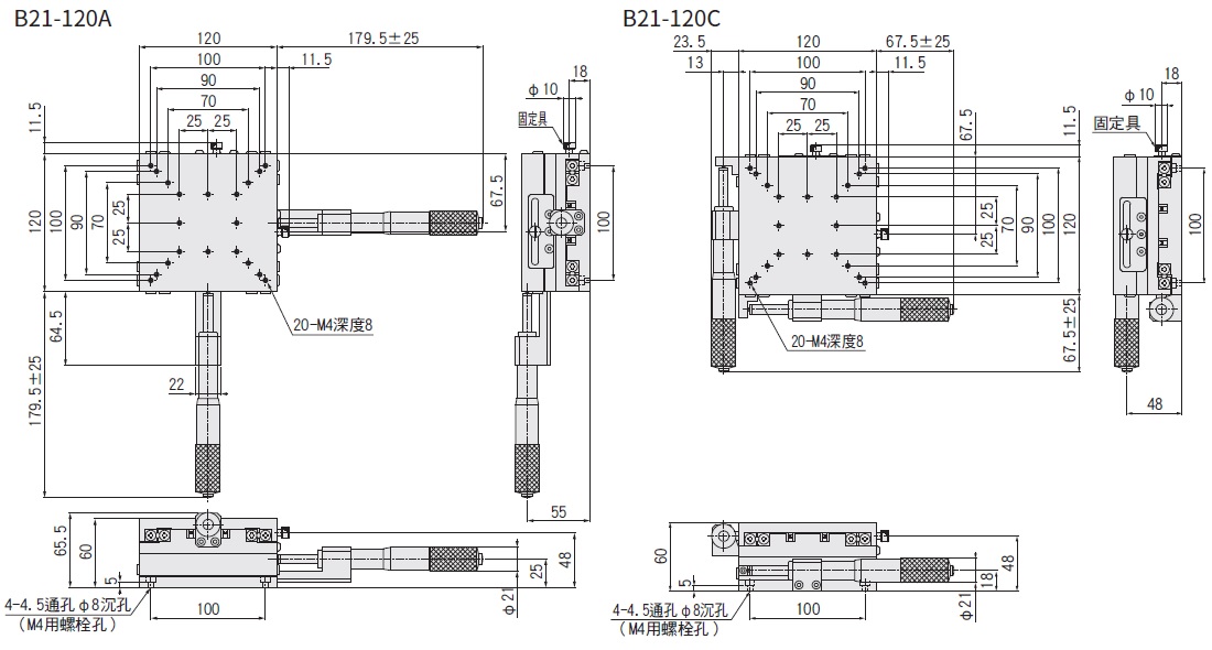 XY軸交叉滾柱□120mm:B21-120