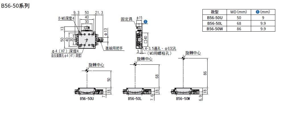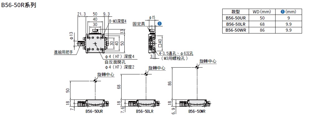 交叉滾子測角滑台□50mm:B56-50(蝸桿)