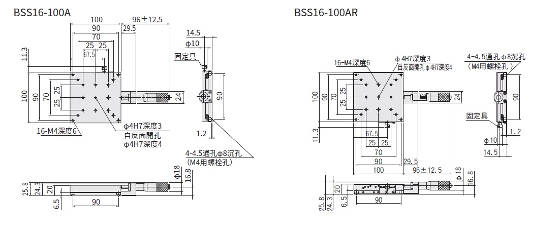 X軸 直線滾珠導軌型□100mm:BSS16-100