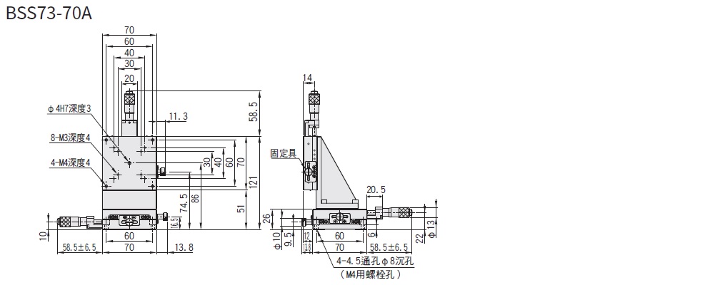 薄型XYZ軸直線滾珠導軌□70mm:BSS73-70