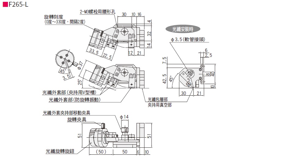 近接用旋轉光纖夾具:F265