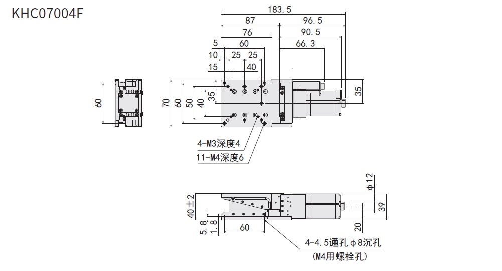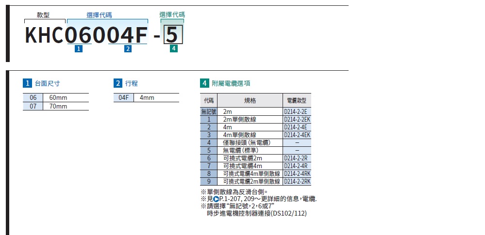 滑台面尺寸:70×70mm規格時型號為「KHE07~」。