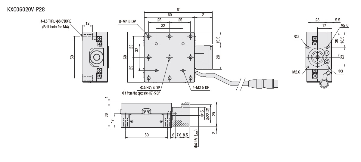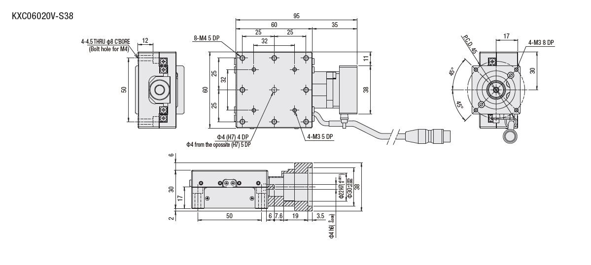 無馬達型X軸交叉滾柱導軌型:KXC06020V